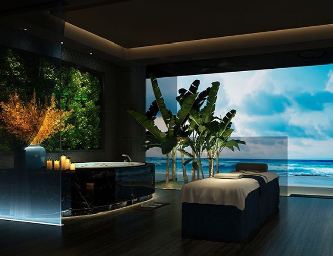 水疗区配备了先进的水疗设备,如按摩浴缸、水疗池和淋浴设施,提供多种水疗服务。